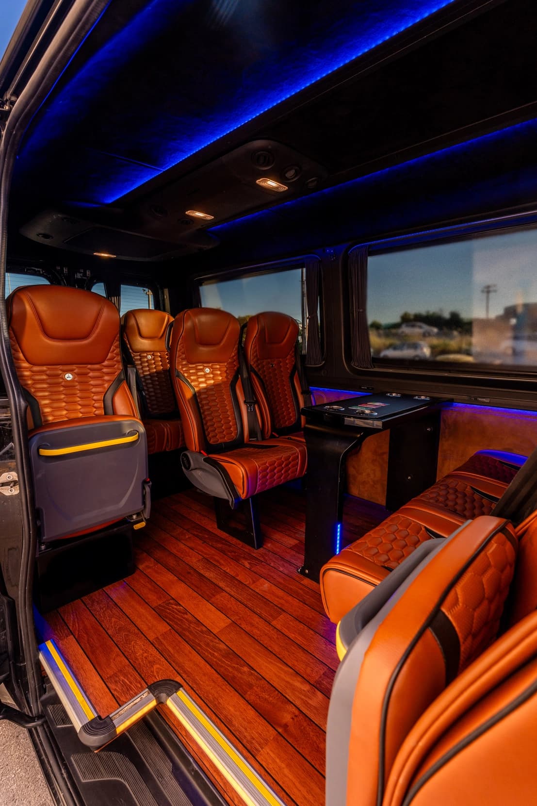 Our flagship Mercedes Sprinter offers the perfect combination of luxury and practicality. Spacious, comfortable, and equipped with premium amenities for groups and luggage.